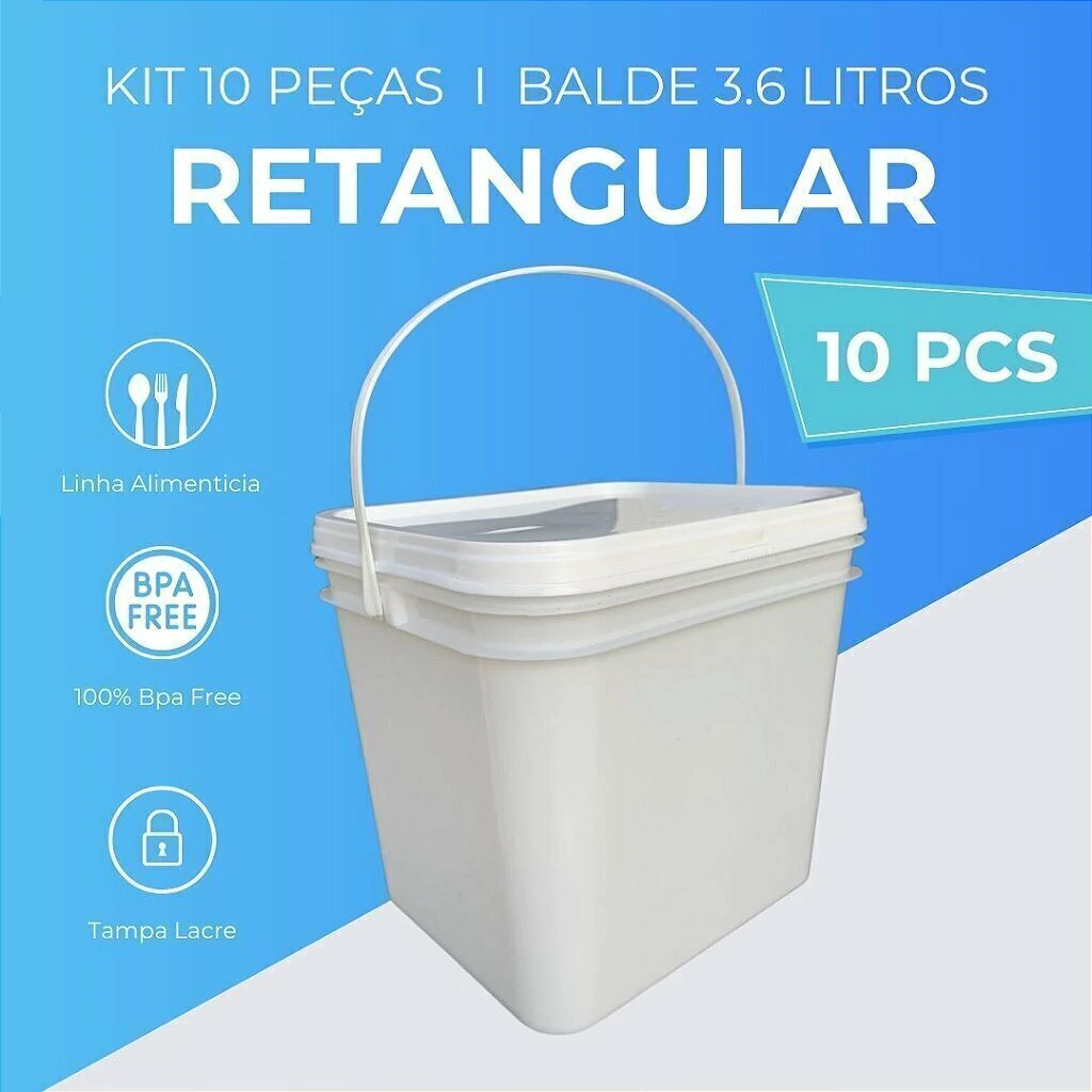 Balde Retangular 3,6 Litros com Tampa Lacre de Segurança 100% BPA FREE Nastripack – Kit com 10 Peças